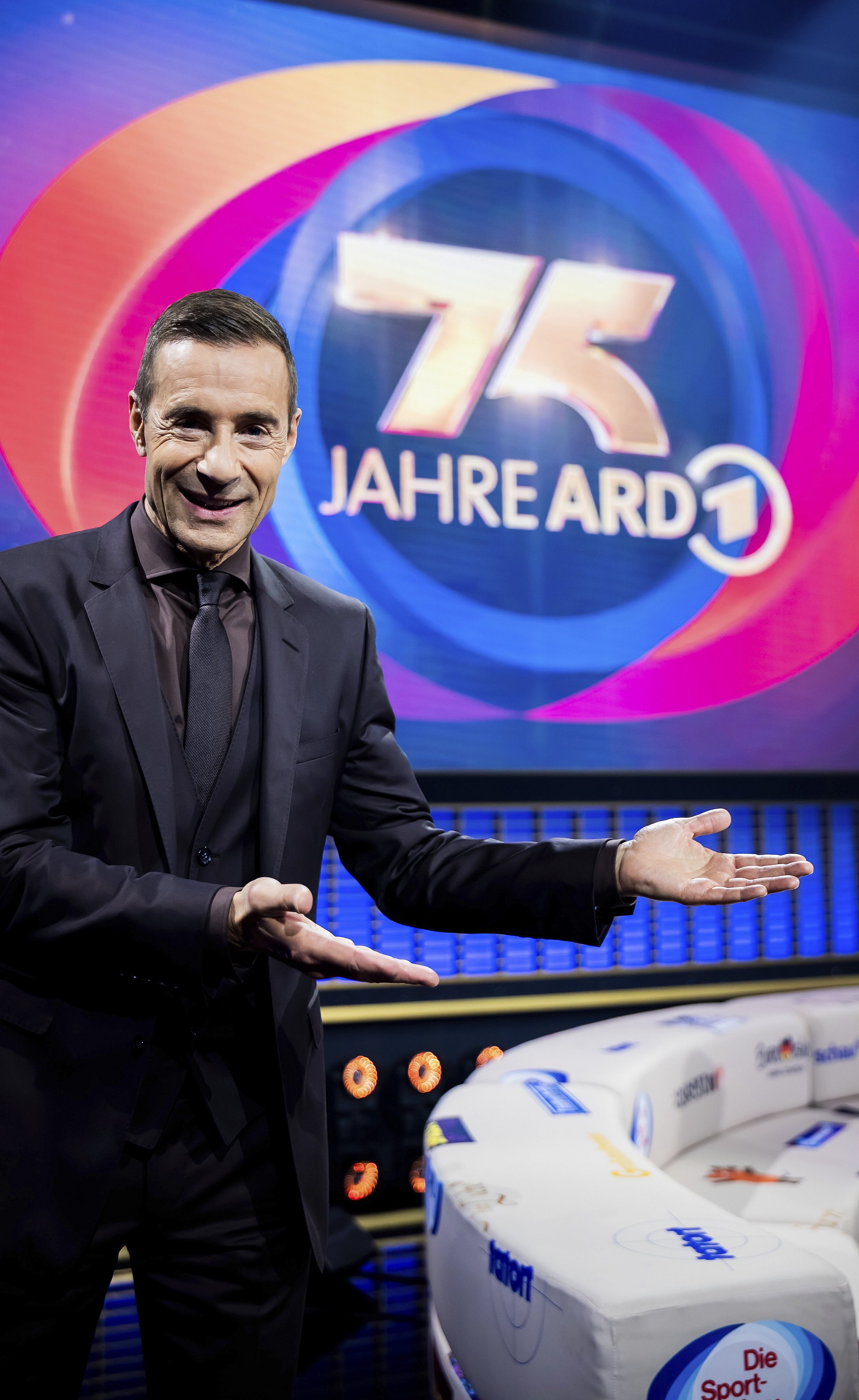 Große Emotionen, große Momente, große Stars: In 75 JAHRE ARD – DIE GROSSE JUBILÄUMSSHOW lud Showmaster Kai Pflaume 2025 im Ersten und in der ARD-Mediathek zu einem Abend voller Nostalgie, Überraschungen und bester Unterhaltung ein.